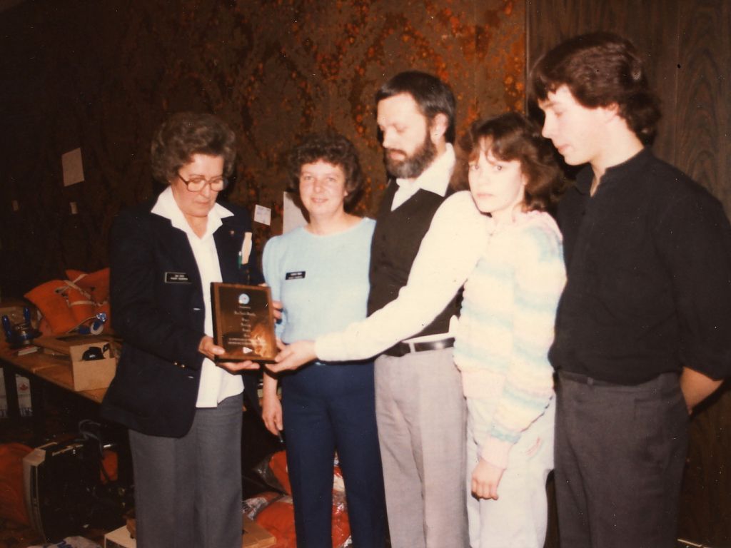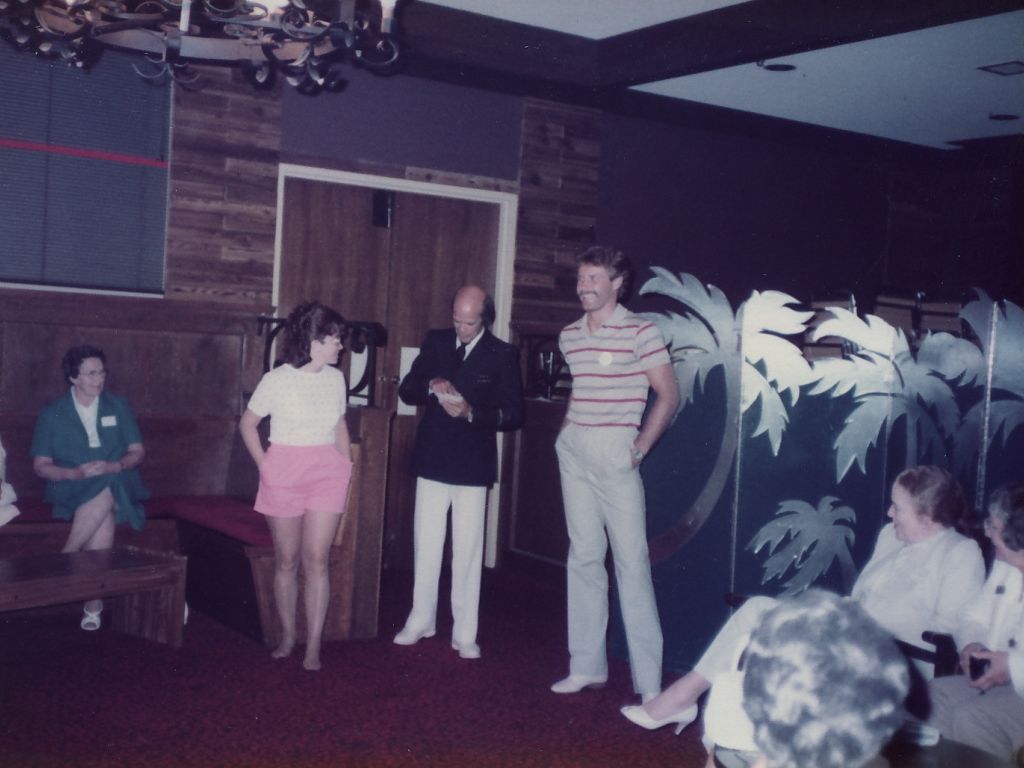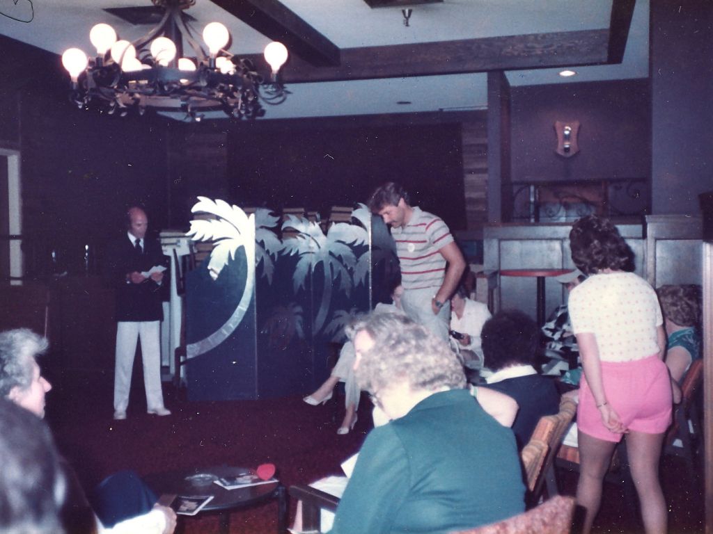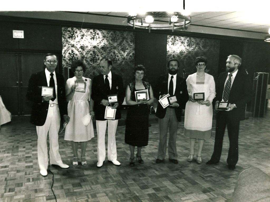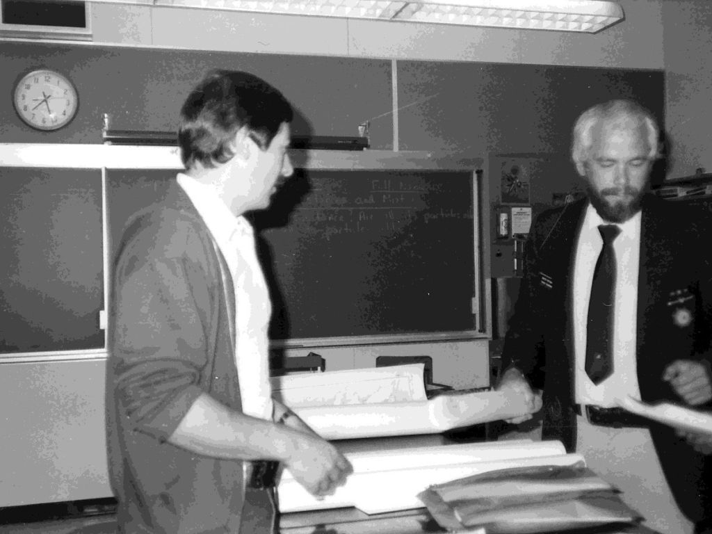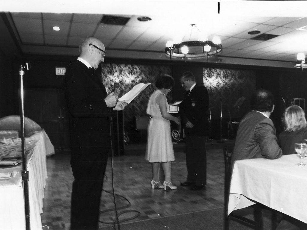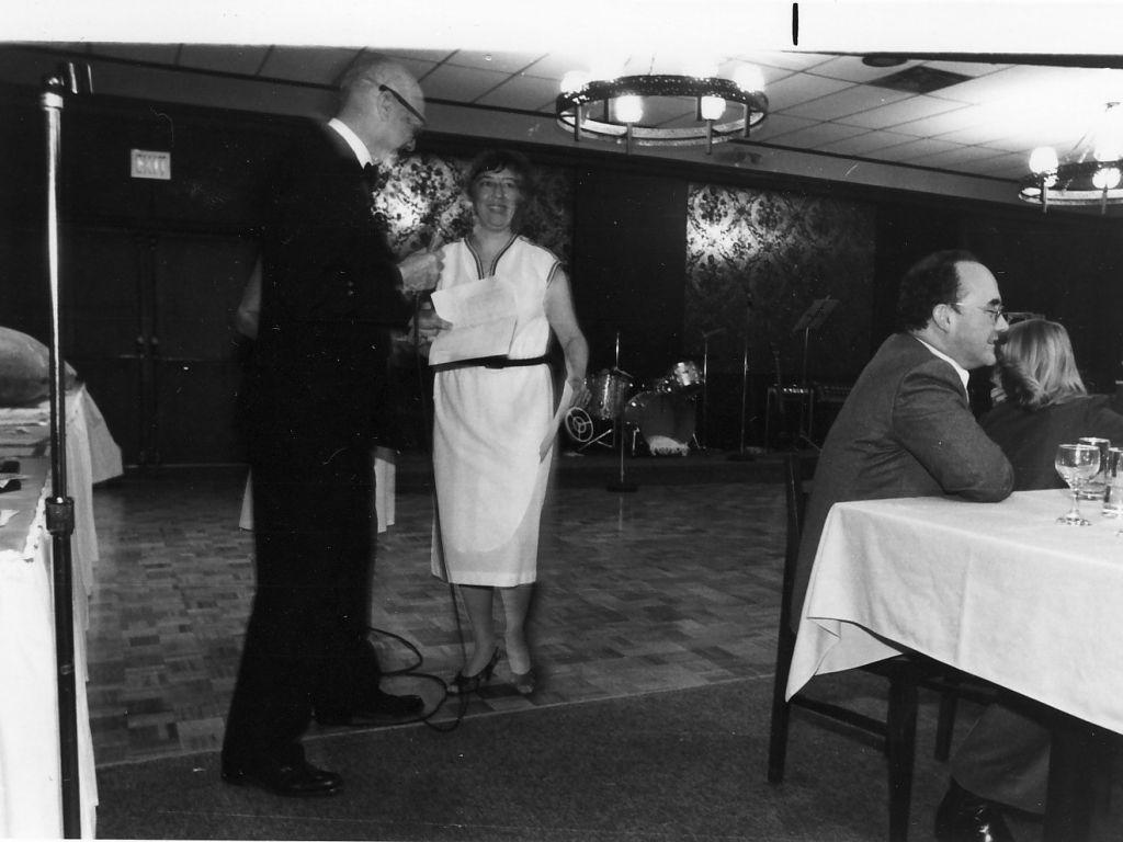 Presenting merit marks at 1988 Celebration of CPS 50 Years and Christmas Party