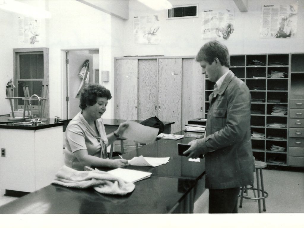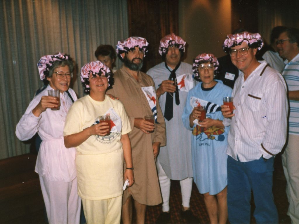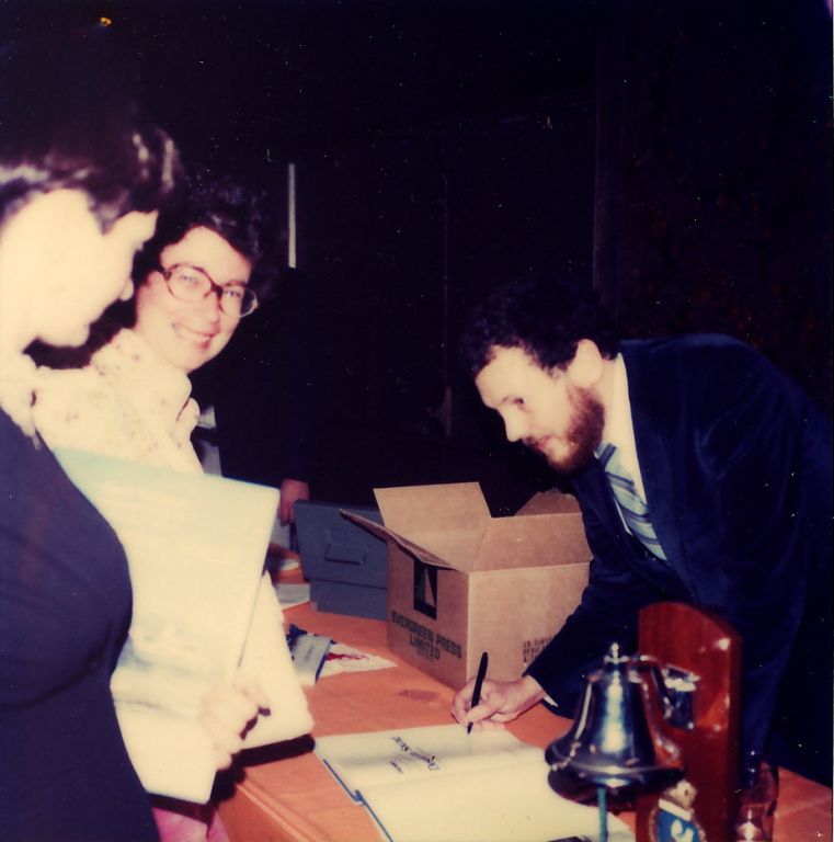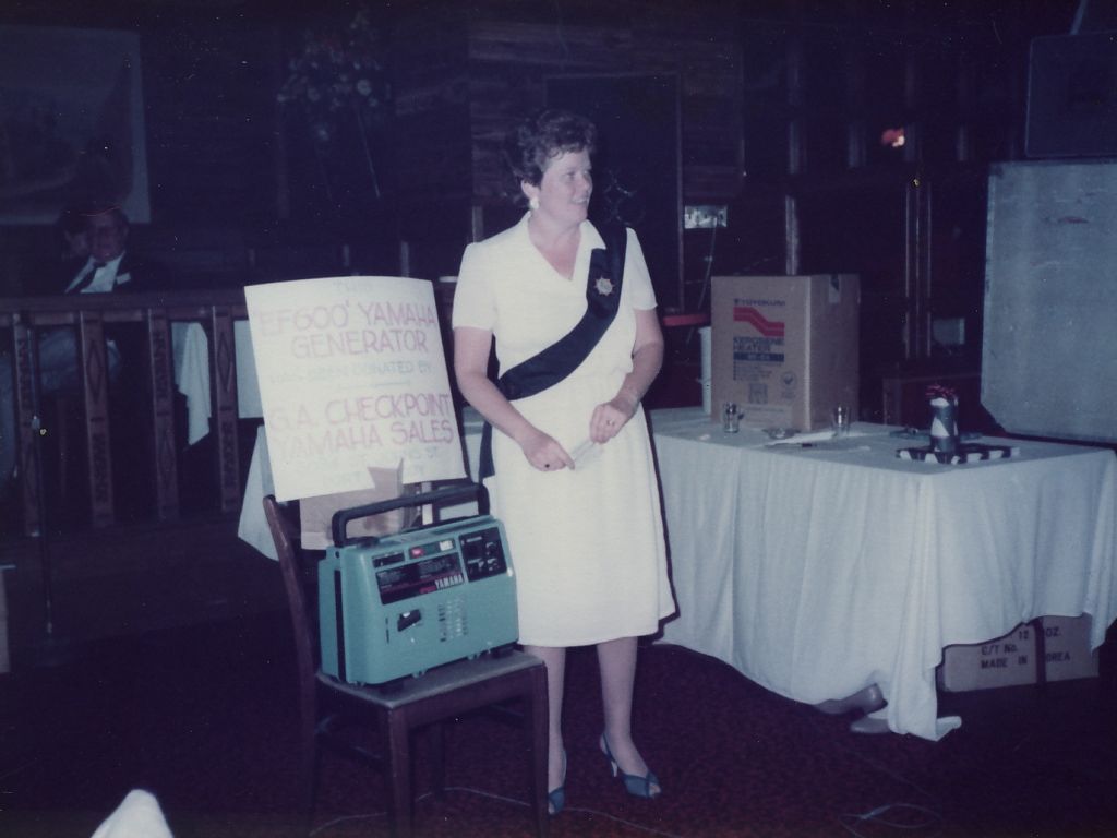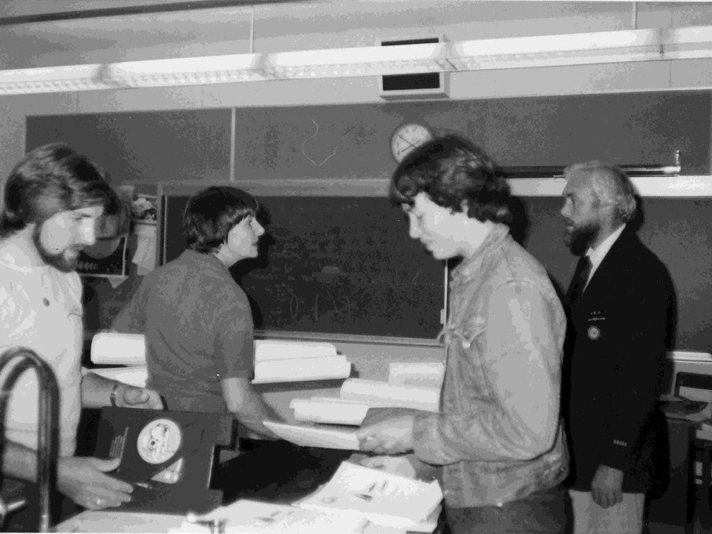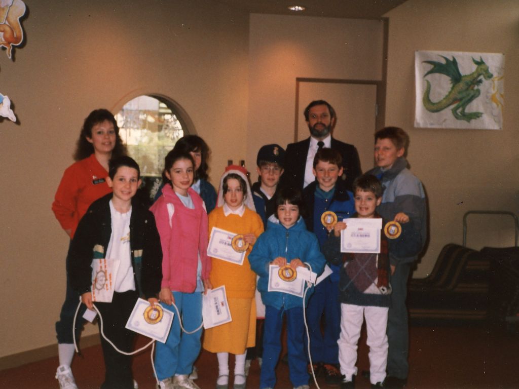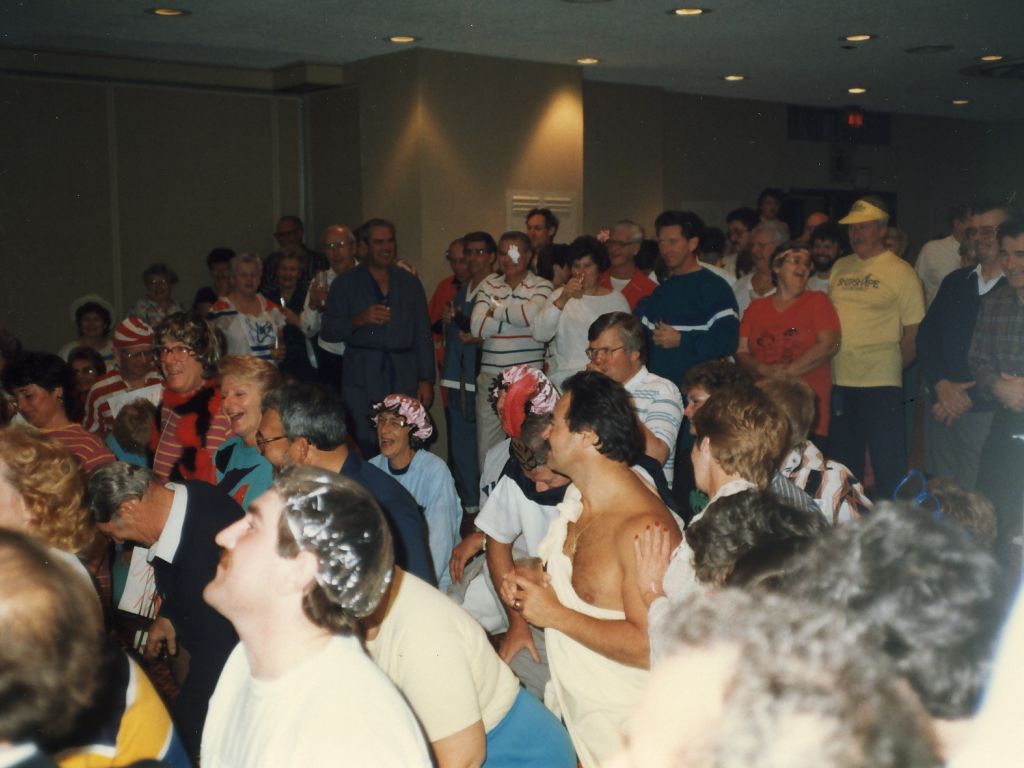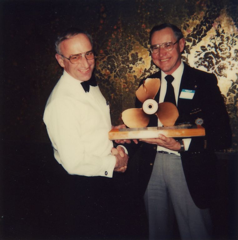 Presenting merit marks at 1988 Celebration of CPS 50 Years and Christmas Party