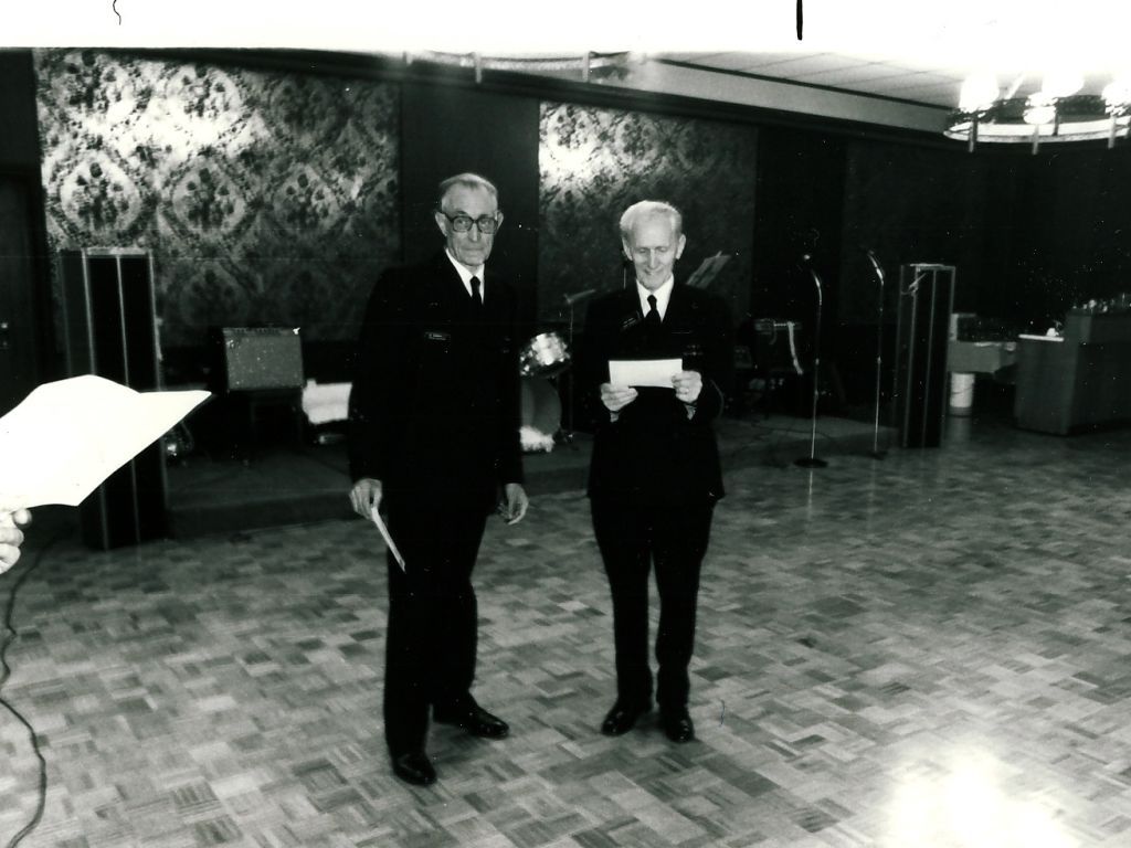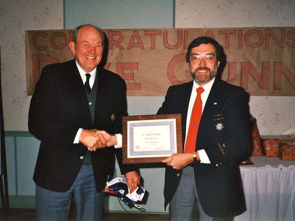 1983 - DC Wally Kiss congratulates Herb Brimble and Al Curran, receiving their 23rd Merit Marks