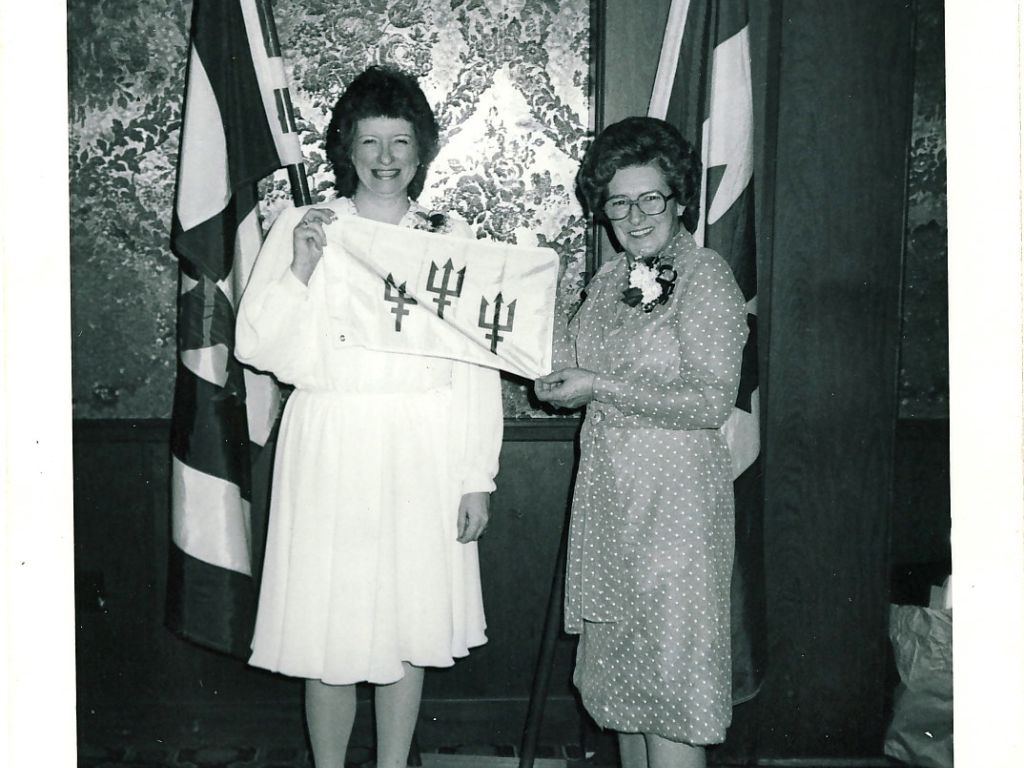 1983 - Cdr Carolyn Hoffman receives her flag from Cdr(R) Sue Dyck