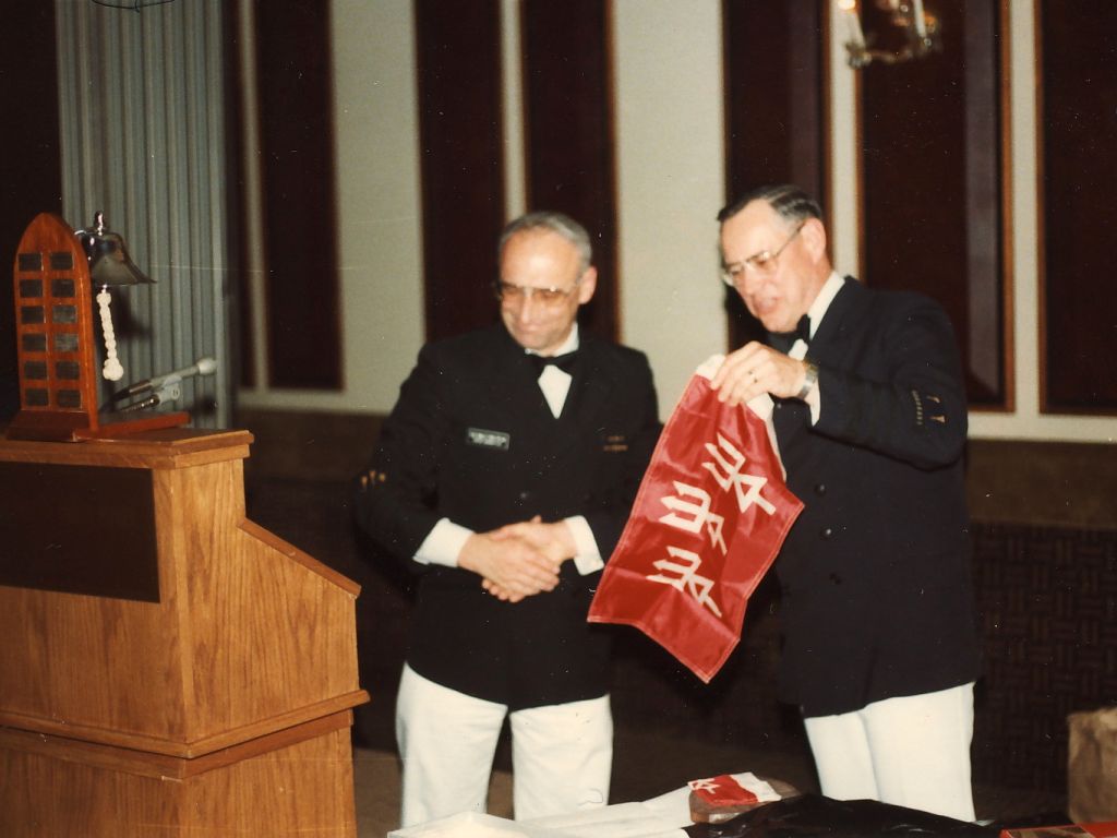 1984 - Cdr Carolyn Hoffman receiving the Commander(R) Flag from Cdr George Schurman